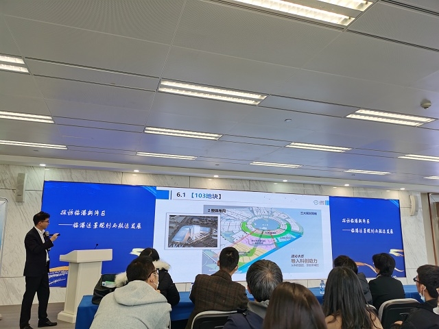 随后青年协会一行人员又前往了位于临港现代服务业开放区的临港新片区经济发展有限公司,在滴水湖金融湾展厅内,深入了解现阶段区域建设和航运中心未来发展规划情况。临港新片区经济发展有限公司产业促进中心总监陈明伽先生从制度创新、产业政策、土地政策、住房政策、人才政策等多个角度向大家介绍了临港新片区的政策优势,创新产业和产城融合的概况和规划,着重介绍了金融湾的远景规划:致力于打造国际商业服务中心、国际航运服务中心、创新金融服务中心等六大服务中心,希望未来能与成人导航 有更深入的合作,促进高校与企业的产教融合,共同助力临港国际航运中心的建设。