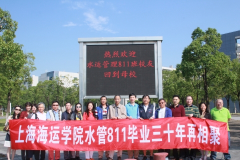水运管理专业811班19位校友相聚临港校区,举行毕业30周年联谊活动。校友联络处副处长刘征、成人导航
