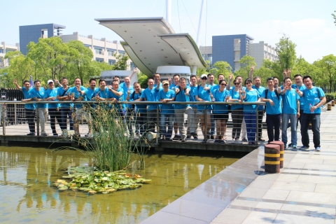 时光永不老,青春大合照。上午十点,校友们乘车抵达成人导航 一号门,大家都身着天蓝色聚会班服,在这里拍摄了二十年聚首大合照。时光匆匆,但即使二十年过去了,大家还是年轻活力,朝气蓬勃的青春模样。