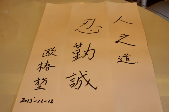 2013年12月,分管吴淞校友会工作的副校长金永兴教授代表学校党委和行政,探望住在上海虹桥寓所的欧椿堃老先生。欧老向金副校长展示了他亲笔书写的书法作品,并现场即兴发挥,用粗水笔写下了“人之道,忍勤诚”,笔触洋洋洒洒,又一次体现欧老内在高尚的为人之道。