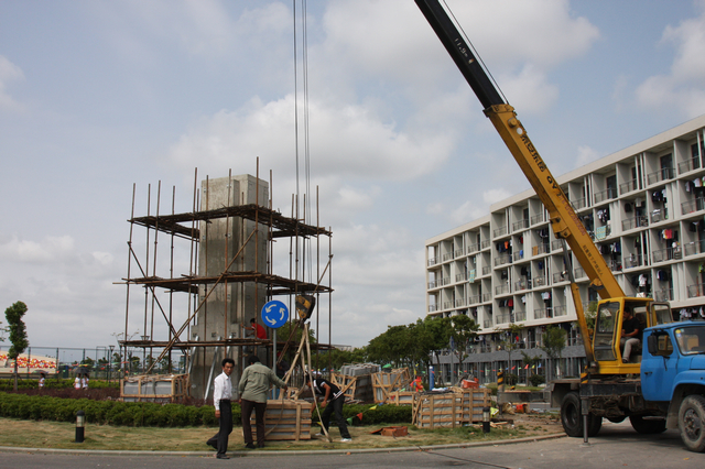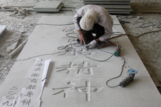 2009年9月,举行百年校庆之前,学校党委同意吴淞校友会提议在新校区设立吴淞商船精神纪念碑。当年,我在资产管理处任处长一职,作为职能部门重任在肩,从纪念碑的选址、设计、制作和安装都由资产管理处承担。此项目由肖宝家副校长亲自挂帅,首先与新校建设办公室商榷选定落成位置,然后与设计单位共同商讨设计方案,我方提供多套方案,如:方尖碑、石碑和纪念墙等,并送校务会及洪振权会长审阅,经多次商议和反复比较,选定最终方案。方案其中一项内容是邀请洪会长为石碑的正面及反面亲笔题词。确定题词内容后,随之落实施工单位,为确保项目质量,在碑文雕刻期间,我和肖副校长专程到福建崇武石雕厂考察雕刻过程及质量,且要求厂方在新校区立碑现场监督施工单位的安装整个过程,必须做到项目的万无一失。
