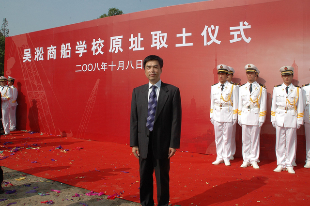 为现场举行取土仪式,洪振权会长、肖宝家副校长和我亲自拜访海军部队,请求给予支持,最后三方一致同意在部队营区举办取土仪式。2008年10月8日上午,吴淞商船学校原址取土仪式正式举行。吴淞老校友亲临现场,代表们激动万分,见证这来之不易的历史时刻。洪振权会长在大会上感慨的说到:吴淞商船学校三起三落,培养了一大批国家航运精英,为中国航运事业作出了巨大的贡献,我们老一辈吴淞人希望吴淞商船精神能在成人导航 继承与发扬。