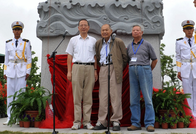 图三 吴淞纪念碑揭幕仪式 2009.9.23 於世成书记、洪振权会长、王圣光副会长