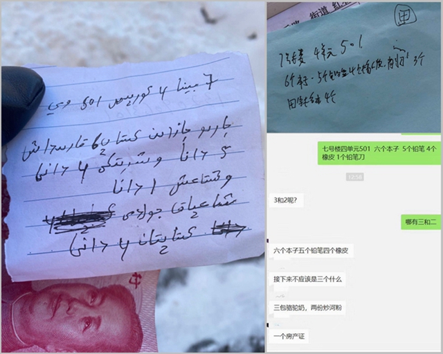 少数民族同胞给的物资单和对应的翻译
