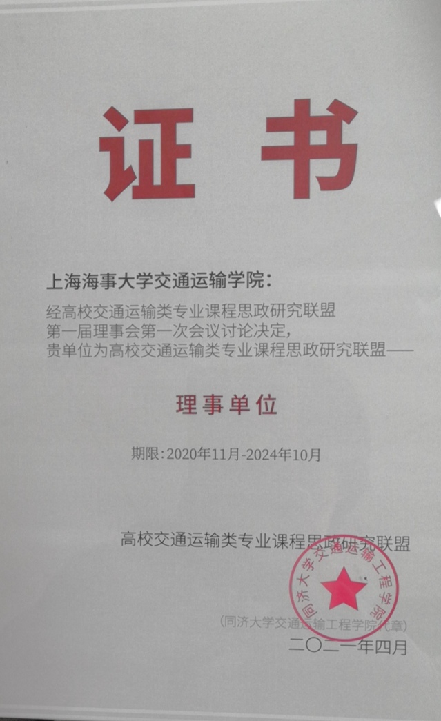 ur2young 在 08/04/2021 - 11:29 提交 经高校交通运输类专业课程思政研究联盟第一届理事会第一次会议讨论决定,聘请成人导航 为高校交通运输类专业课程思政研究联盟理事单位,期限是2020年11月至2024年10月,并颁发了证书。