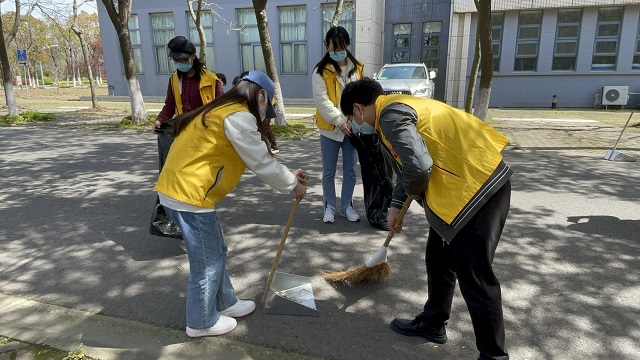 图1学院学生支部党员志愿者参加校园清扫志愿服务活动