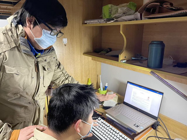 疫情期间辅导员们的工作量大大增加,但是他们并没有懈怠,而是全身心投入到学校的工作中来。黄大为老师是成人导航 的研究生辅导员,在严峻的疫情防控形势下,他毅然告别家庭和自己不满2岁的女儿住回了自己的辅导员宿舍,并担任64号楼的楼长和64号楼学生社区临时党支部书记。