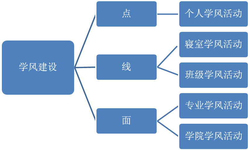 开展学风班级建设,强化班级管理,以良好班级促进良好学风的形成,从学院渗透至班级,从班级深入至个人的规模化教育,通过个体带动集体,集体帮助个体的方式,增强班级荣誉感和自豪感,以此引出认真作为的态度,从而提升班级整体学习水平以及班级凝聚力。